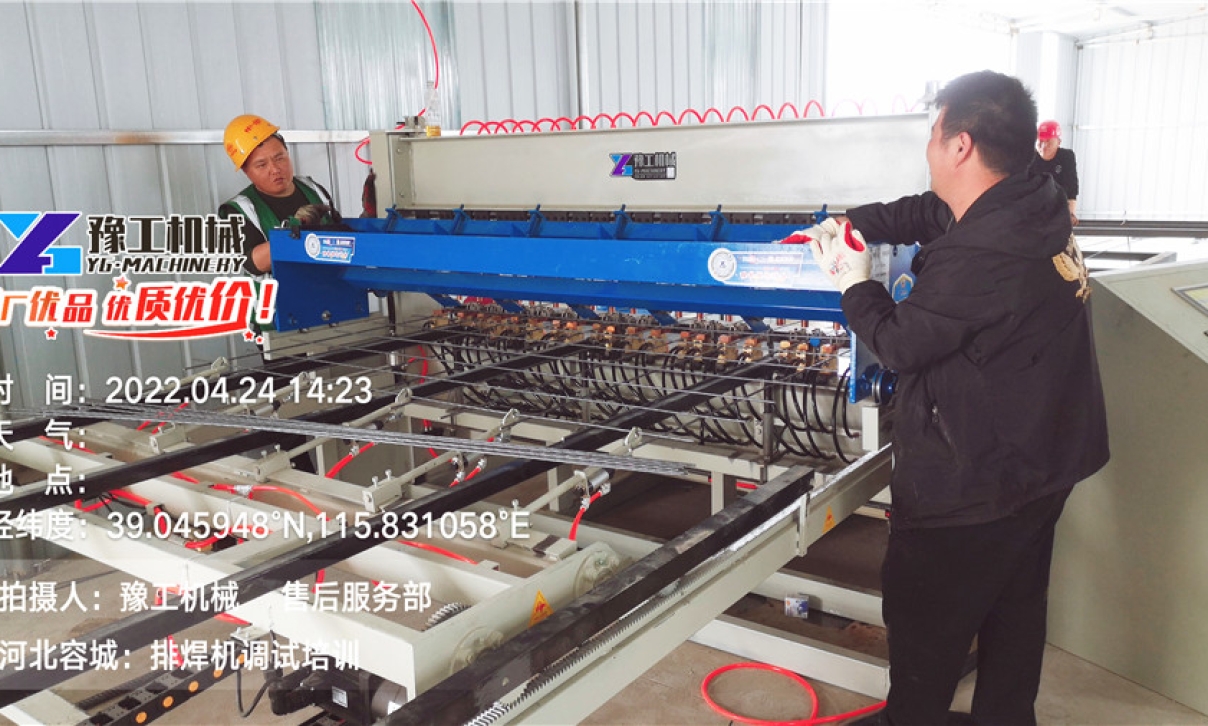 中鐵十一局雄安新區(qū)容西市政工程建設(shè)項(xiàng)目,客戶需要制作寬2米,長(zhǎng)6米,鋼絲直徑6-8mm,20個(gè)焊點(diǎn)的鋼筋網(wǎng)片,用于批量的建筑用鋼筋網(wǎng)片焊接。客戶精心篩選了4個(gè)廠家,提供設(shè)備方案,最終選擇豫工,是對(duì)我們專業(yè)能力和高性價(jià)比施工方案的高度認(rèn)可。針對(duì)客戶的施工要求,產(chǎn)品經(jīng)理并沒(méi)有推薦最高配置的排焊設(shè)備,而是提供了最適合客戶需求的高性價(jià)比設(shè)備方案:半自動(dòng)氣動(dòng)鋼筋網(wǎng)片排焊機(jī)+2立方左右空壓機(jī)+豫工17年經(jīng)驗(yàn)的專業(yè)服務(wù),因?yàn)檫@份想客戶之所想的合作誠(chéng)意,最終贏得客戶青睞。試機(jī)過(guò)程中,設(shè)備通過(guò)氣動(dòng)下壓的焊接方式,焊接壓力均勻,焊點(diǎn)牢固、穩(wěn)定,焊接速度快,可以達(dá)到40排/分鐘。