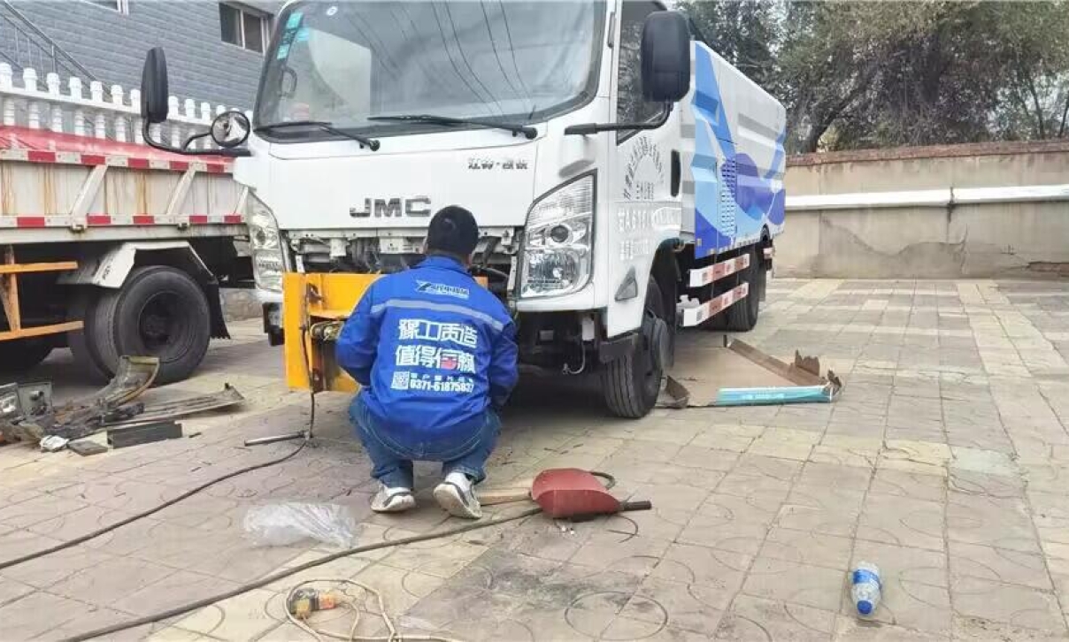 11月15日上午,載著15臺除雪設備的拖車緩緩駛入黑龍江繞城高速養護中心,同期抵達的還有豫工的售后技術人員。