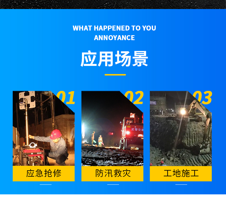 移動照明車適用于各種室內、外場工作場所的照明使用。